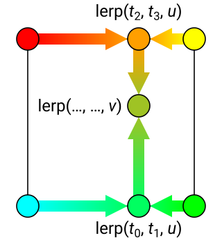 p(u,v)=lerp(lerp(p0,p1,u),lerp(p2,p3,u),v)